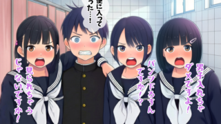 女子同士のズボン下ろしを目撃する男子生徒4
